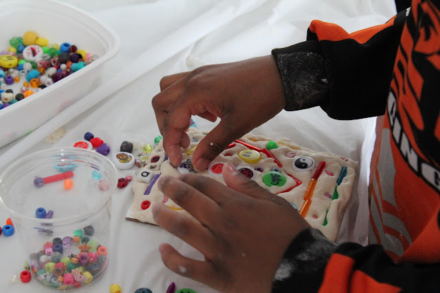 All in all, it was a pretty fun lesson. (And a great way to use up the gazillion beads we’ve collected over the years.) I think next time I’ll mix up the dough beforehand, though. Save myself some mess and drama. 🙂