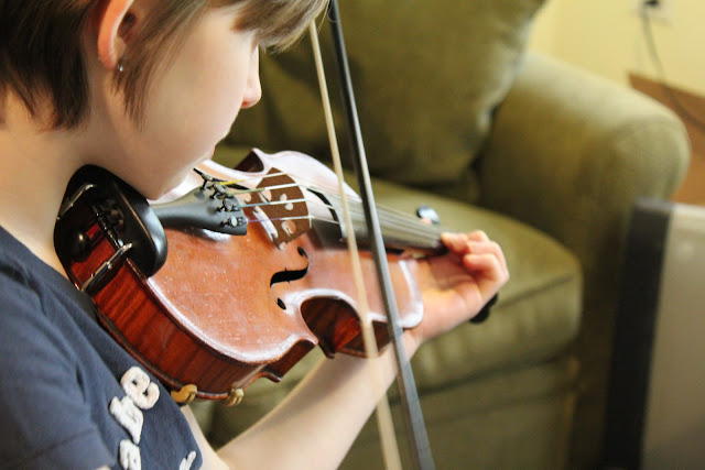 The Muse takes violin lessons in her awesome teacher Julie’s basement. Usually my friend, LakeMom, watches Dolittle and BoyWonder at her place so I can get some work done during the hour-long lesson. This week, however, I had all three kids.