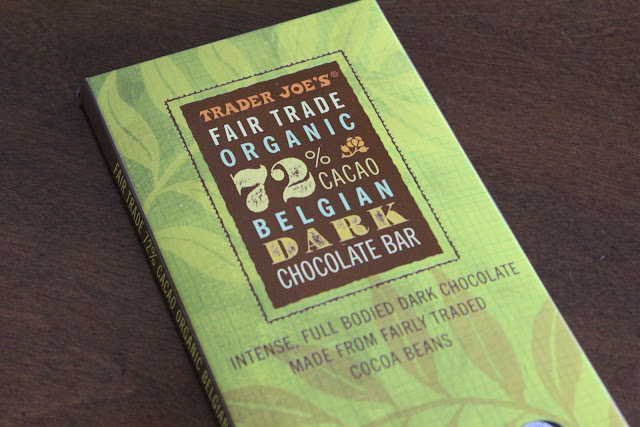 Trader Joe’s sells these awesome dark chocolate bars, and though they are a bit pricey compared to, say, a Hershey bar, they’re cheap from a fair trade standpoint ($1.99 a bar, in case you’re wondering – they’re bigger than a Hershey bar by probably 30%-40%, so it’s really not that outrageous, especially since $4.00/bar is a pretty standard price for fair trade chocolate bars).