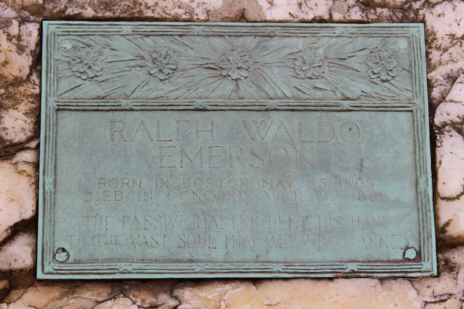 His epitaph includes a line from a poem: THE PASSIVE MASTER LENT HIS HAND TO THE VAST SOUL THAT O’ER HIM PLANNED.