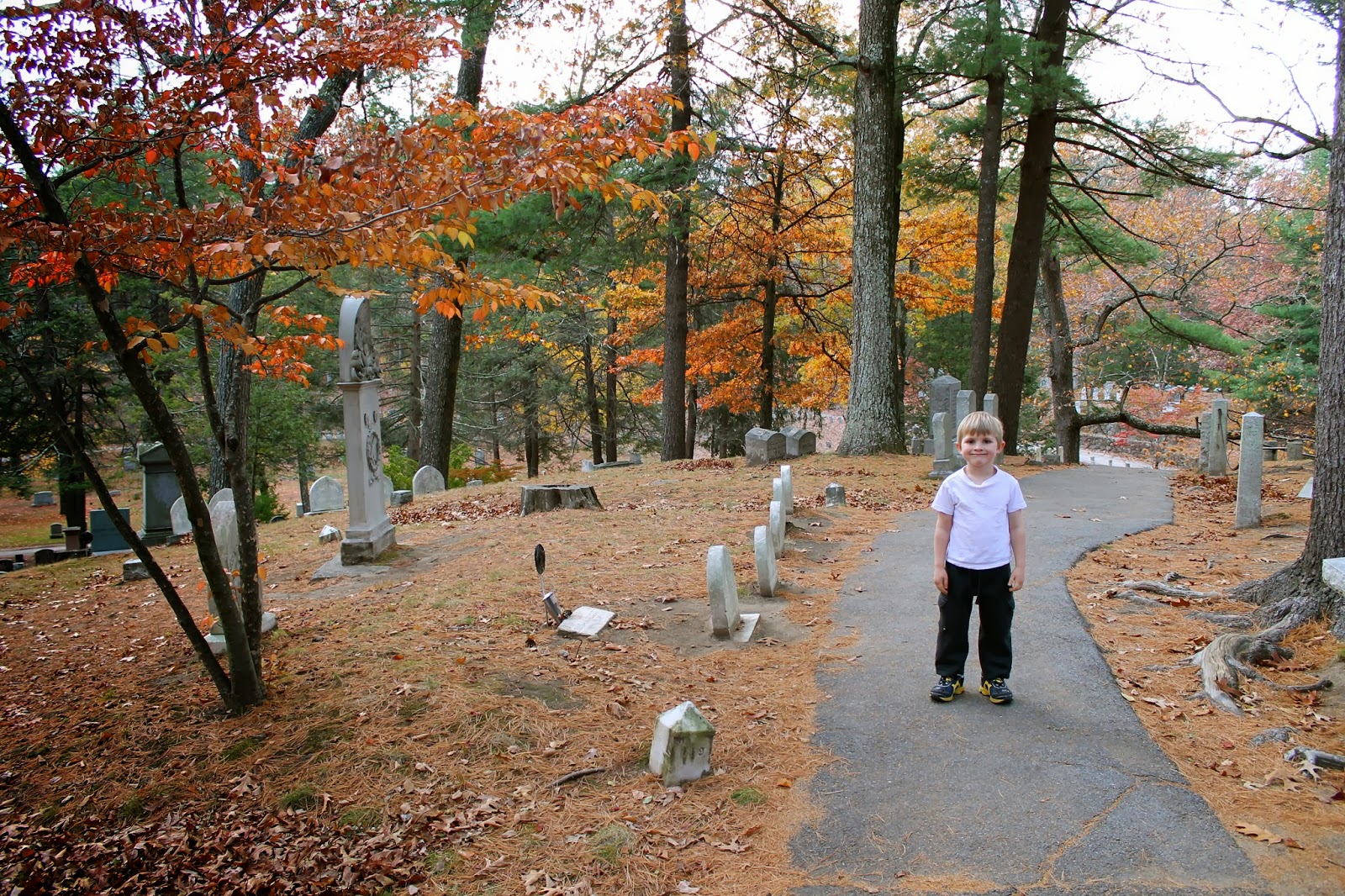 BoyWonder standing right in between the Alcott and Hawthorne gravesites. Someday he’ll know how incredibly cool this is.