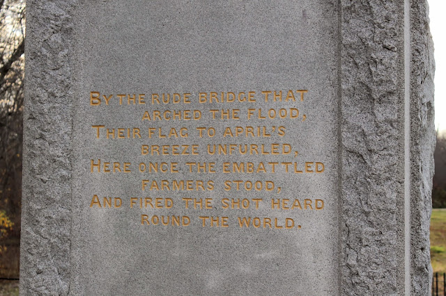 This monument is on one side of the North Bridge, where the colonists confronted the British and “the shot heard round the world” was fired, marking the first day of battle in the Revolutionary War.