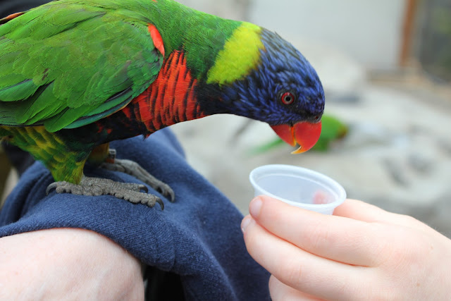 I’d never heard of Lorikeets before we went. They’re adorable. They look like miniature parrots. Gorgeous, bright, little rainbow birdies.